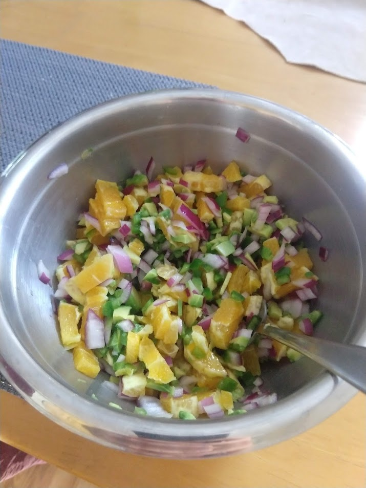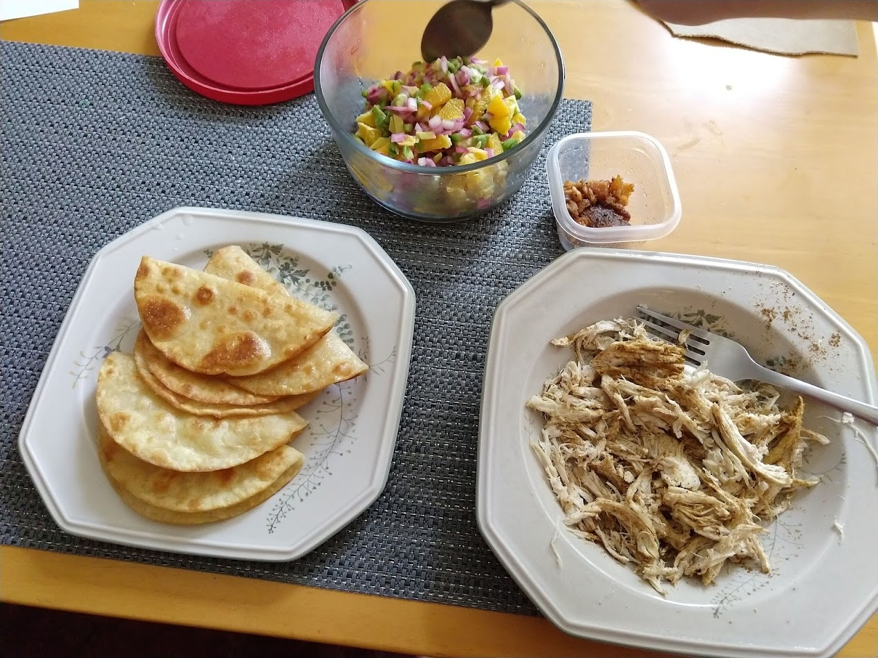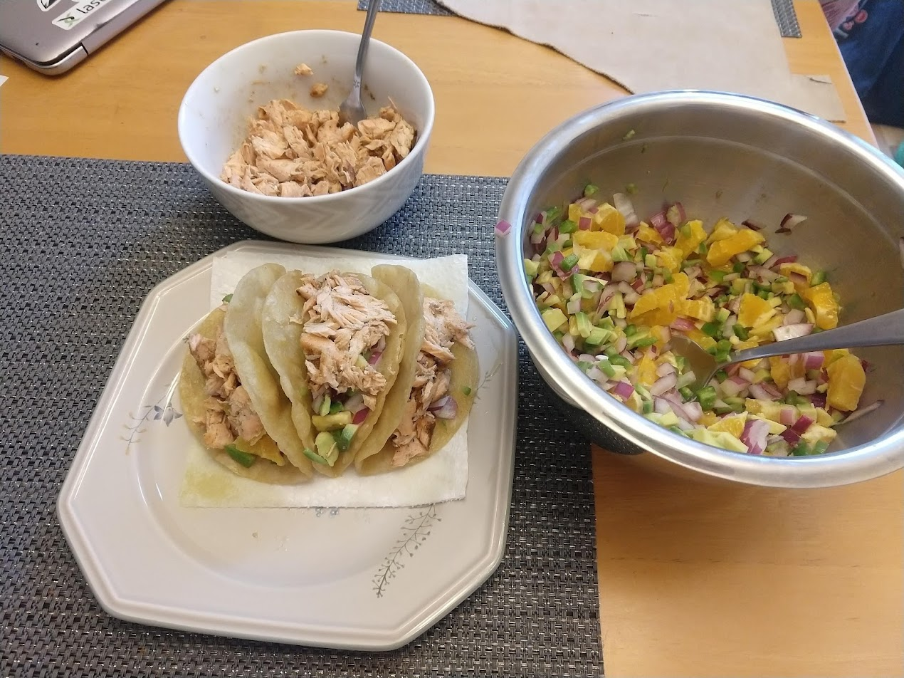Broccoli and cauliflower cheesy soupCabbage stew with sausage and celery and potatoes and carrotsVeggie salad of cucumbers, tomatoes, onions, and crumbled goat cheeseTea and popcornMaking a pot of chaiThe remaining container of chaiTortellini and red sauceHot and sour soup with mushrooms and tofuPotato wedgesOrange chunks, avocado, peppers, onion diced up in a bowlSalmon steaksMaking taco shellsFruity spicy salmon tacosLeftover tacos and chickenLentil soup with oakleaf lettuce from our gardenLentil soup, bread roll, and watermelonEnchiladas with black beans and quinoaPlated enchiladasQuinoa and orange chicken-Quesadilla with sweet potato, corn, onionBroccoli and chicken in coconut lime saucePlated coconut lime chicken and broccoli