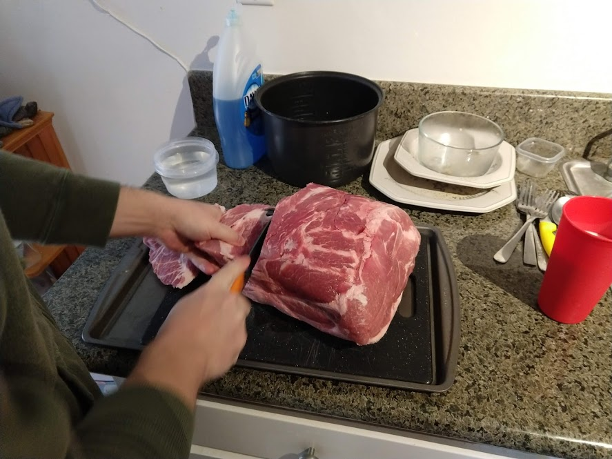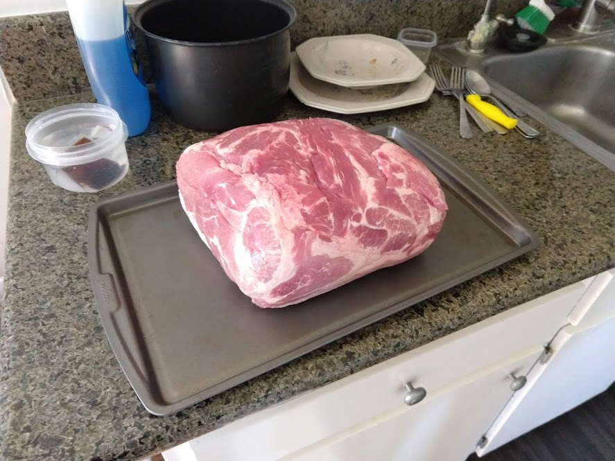 Next up... John discovered that the pork shoulder he was getting was not the puny handful of pounds that he expected, but instead a full ten pounds! It's huge!