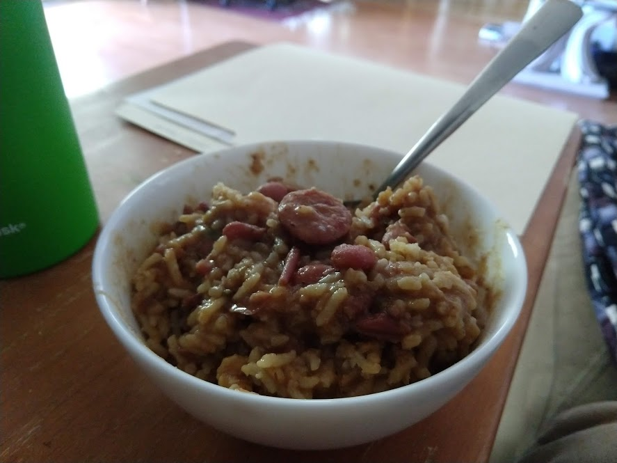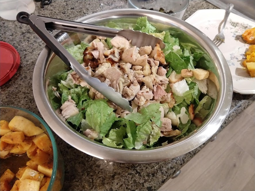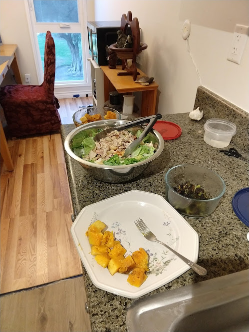 John made more butternut squash and chicken, and this time we mixed the chicken into the salad.