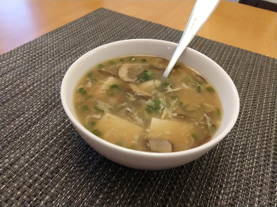 First up is hot & sour soup, with lots of mushrooms and tofu: