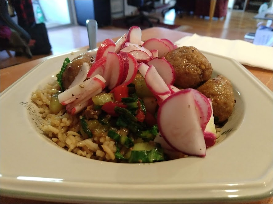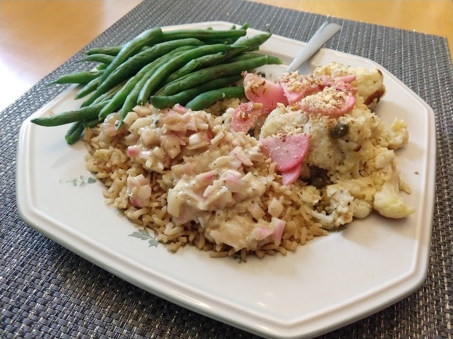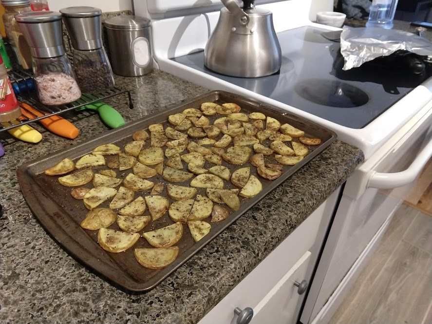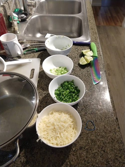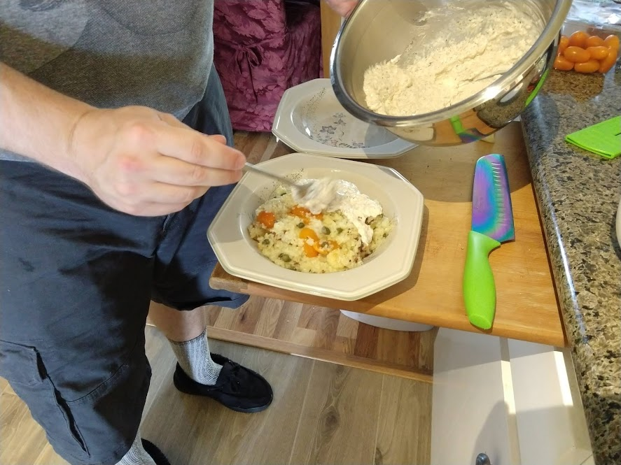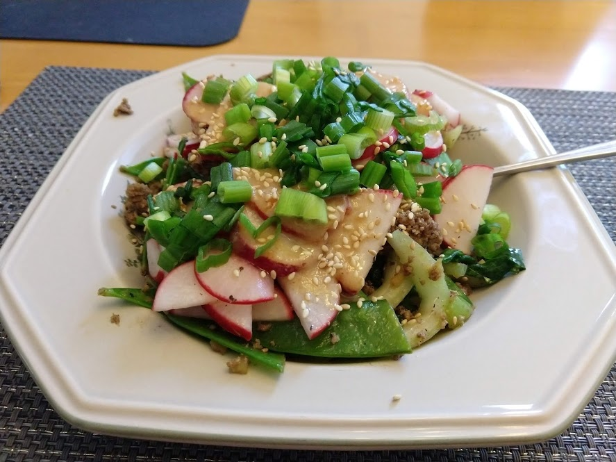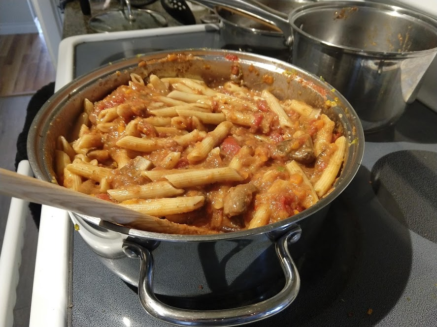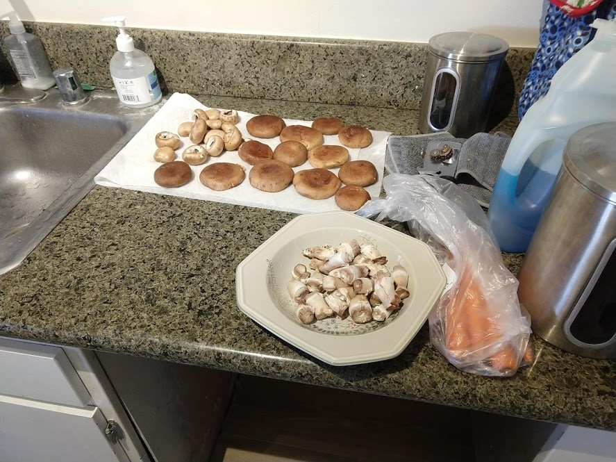 Cooking the enchilada fillingFilling and wrapping up!First one placed!Fresh out of the ovenDelicious enchiladas!Prepping veggiesCooking in progressStir-fry with radishes and peasLeftovers; note how the radishes have their colour spread out when you leave them in vinegarChopping radishesMaking meatballsCooking them in cast-ironBrowned meatballs!With veggies mixed inMeatballs and rice and radishes and veggiesPot stickers and riceSlow-cooker pork and split peas and bok choySplit pea soup!Oven-roasted cauliflowerCauliflower and veggiesPouring a sauce over the cauliflowerAdding radishes. Lots of radishes this month, eh?Garnished with diced almondsSalmon steaks!Potato slicesServed with green beans and red bell peppers, and a radish sauceLeftover cauliflower and rice and green beansGinger slices in a pot of water! What could it be?Whole bunch of spices – it's chai, of course!Add in the black tea leavesWhoops, I let it steep for 20 minutes instead of 5. Milk to the rescue!Shredded zucchiniIngredients for the dish – cheese, green onions, limesMixing the zucchiniIt's quesadillas!Zucchini quesadillas with golden raisins and sour cream sauceJust look at the golden raisins in there!Mushroom and veggiesGnocchi is ready!We had grandma T over for lunch!Cheesy mushroom gnocchi with breadcrumbsTurkey burgersTurkey burgers that are brownedLeftover BBQ marinade as a sauceBuilding the tower of burgerFinished burger!Cheesy potatoesIced smoothies!Lots of mushrooms!Huge pot of veggiesDiced mushroom pastePasta, veggie sauce, and sauted mushroomsAll mixed togetherServed up mushroom raguCrackers and salami and cheeseVeggies preppedNote John working the dough in the backgroundOpen-faced pie! With baby arugula, feta, mushrooms, and onionServed up open faced pie halfSecond helping, with whole grain wheat doughCherry tomatoes and feta and baby arugulaCrackers with the leftover pie makingsMore quesadillasMushroom quesadilla with cheesy veggiesInside of the quesadillaBlack bean soft shell flour tacos with fried zucchini