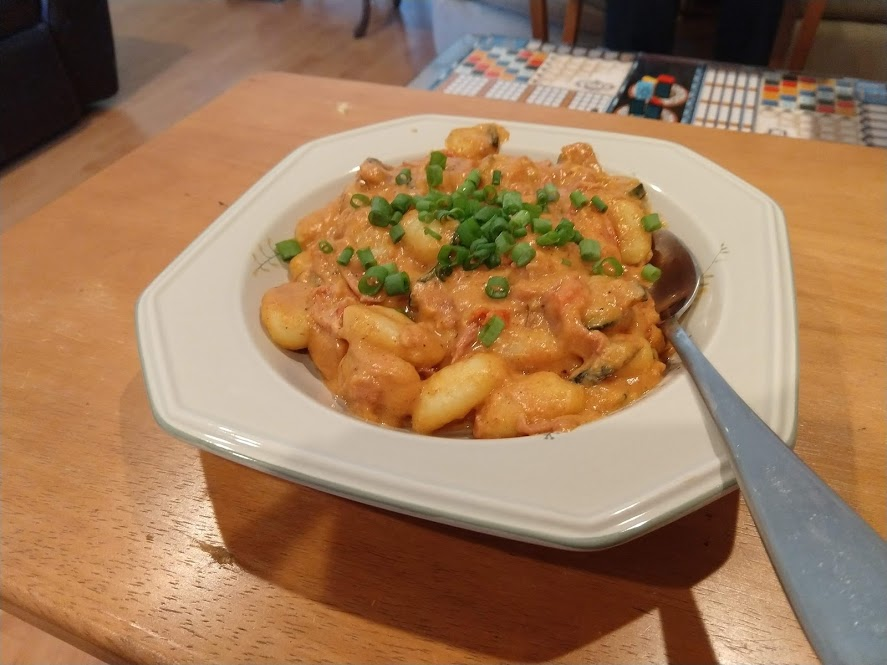 We hosted our friends and decided to trot out our prosciutto gnocchi dish again: