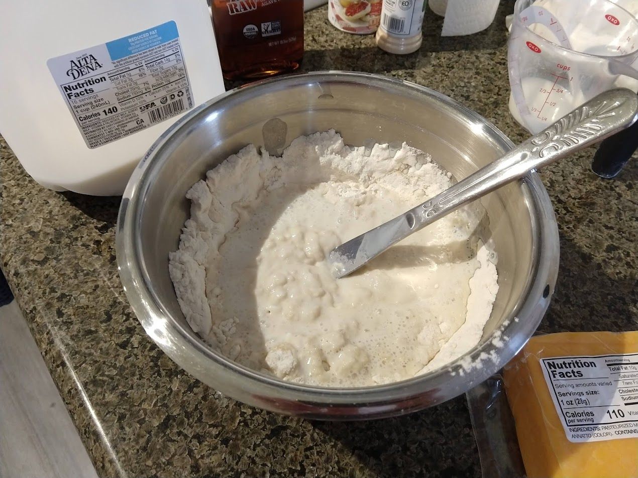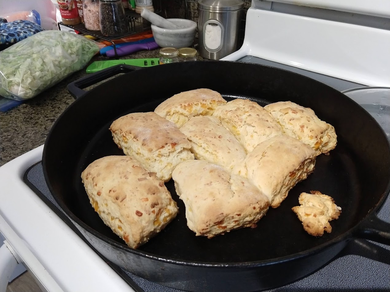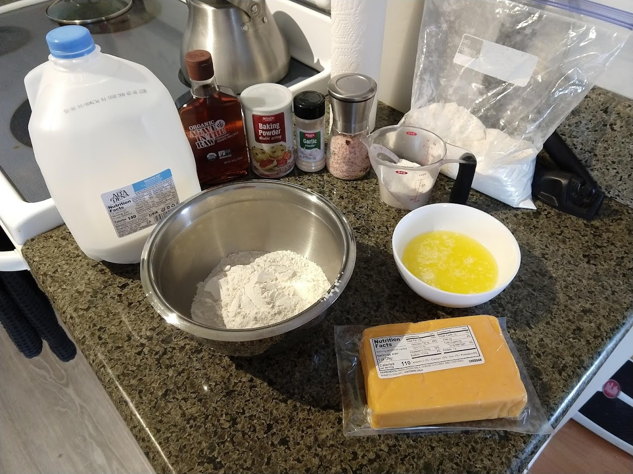 This month we started making cheddar biscuits, and honed our procedure for it. They're a delicious cheesy and bread-full snack!