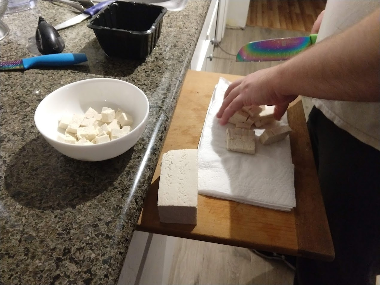 - 8 ounces firm tofu, cut into 1/2-inch cubes