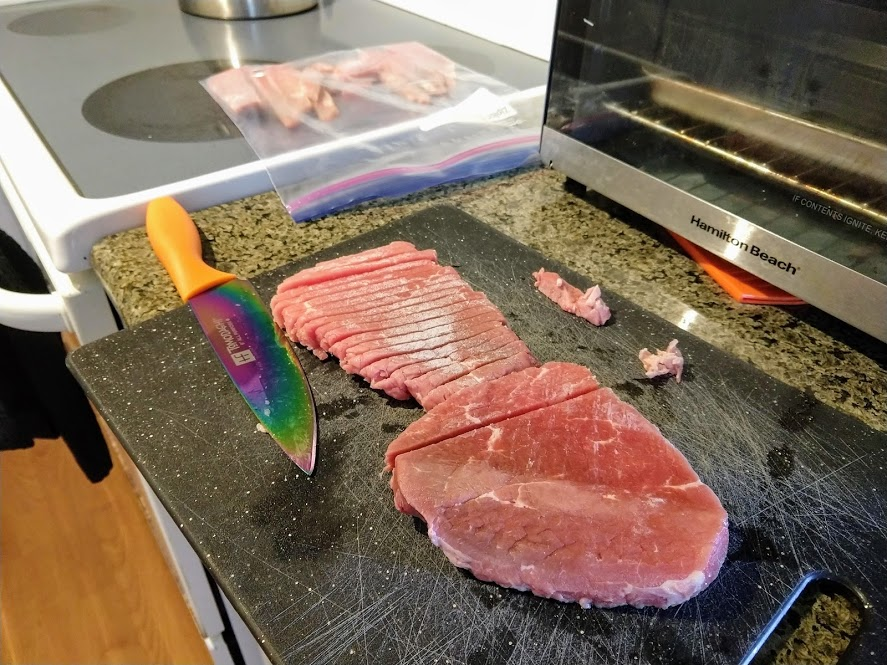 Once the marinade is ready, you can start prepping the jerky the night before you plan to cook it: