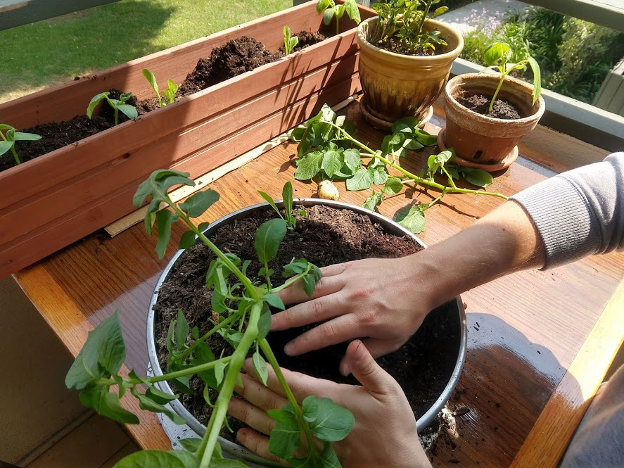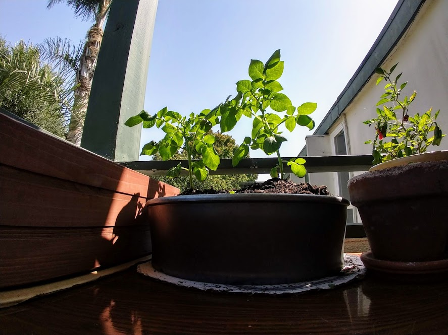We didn't actually know how best to grow potatoes before we started, we just knew that we needed to mound them. As a result, we put them in the shallow pan that was nowhere near deep enough.