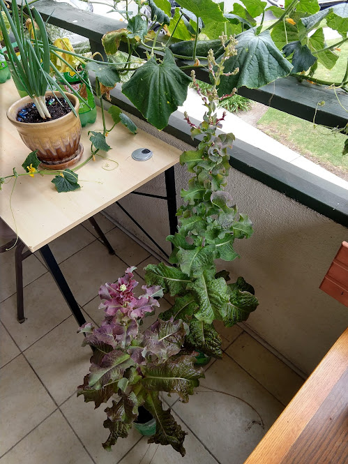 I'm hoping that we can get some seeds off of these super-tall lettuces, so that we can grow even more in the next season! Doing a full life cycle is part of the learning process for me.