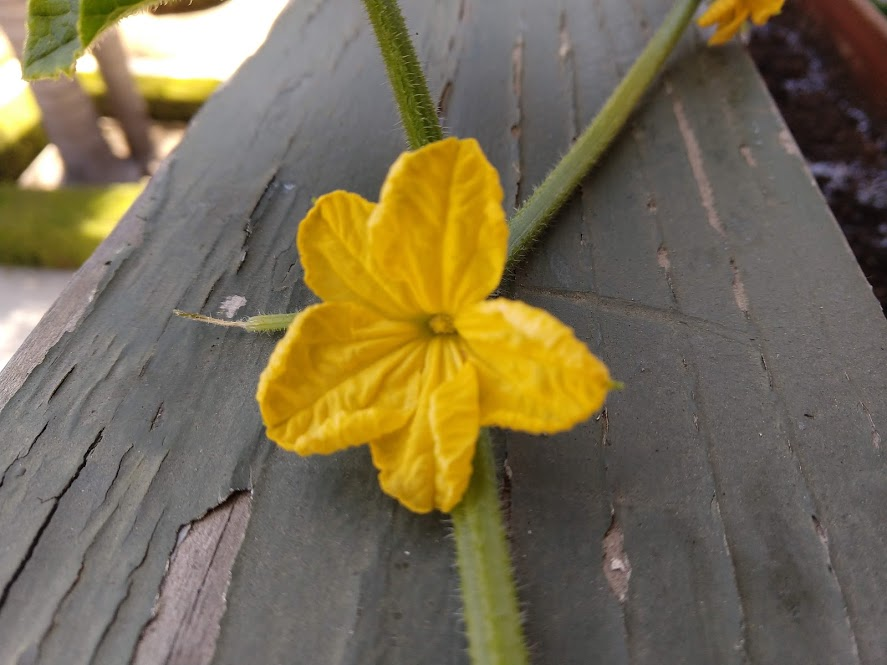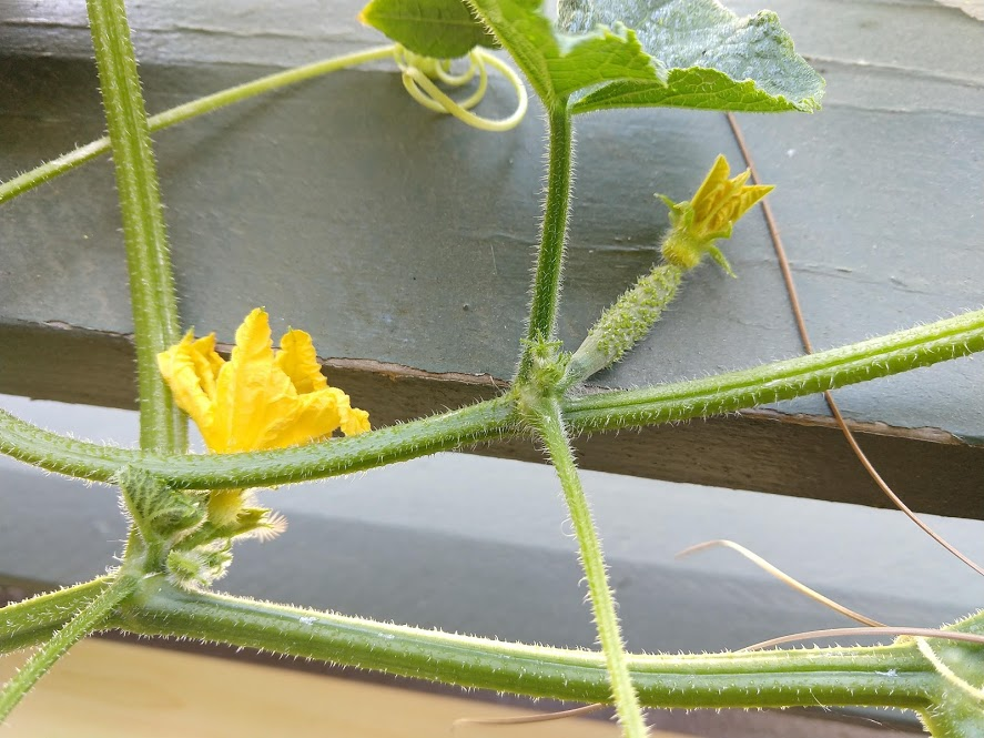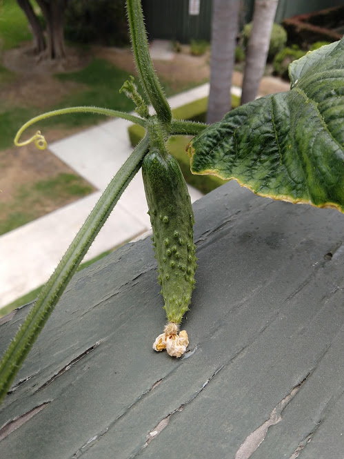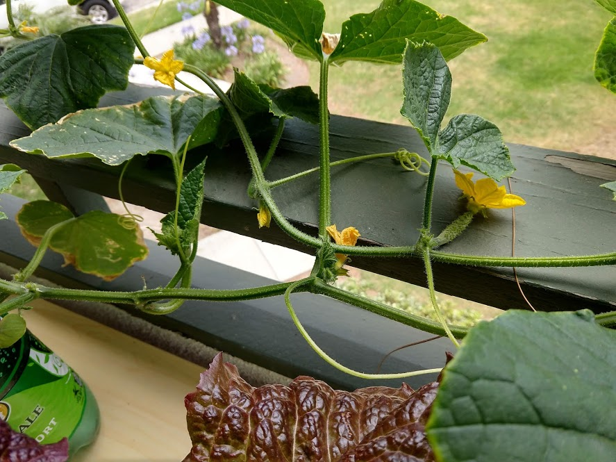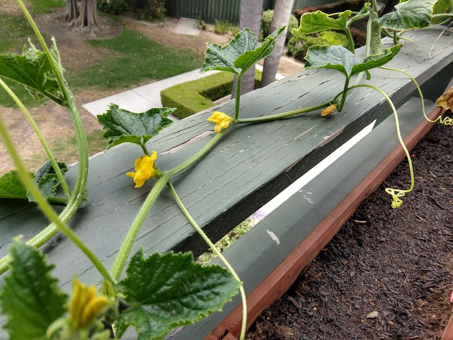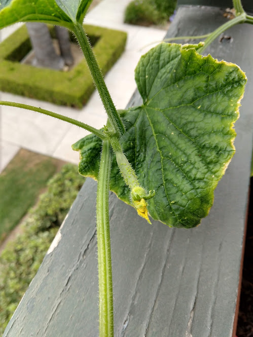 Our garden is blooming this month, despite the June gloom! Check out the cucumber flowers.