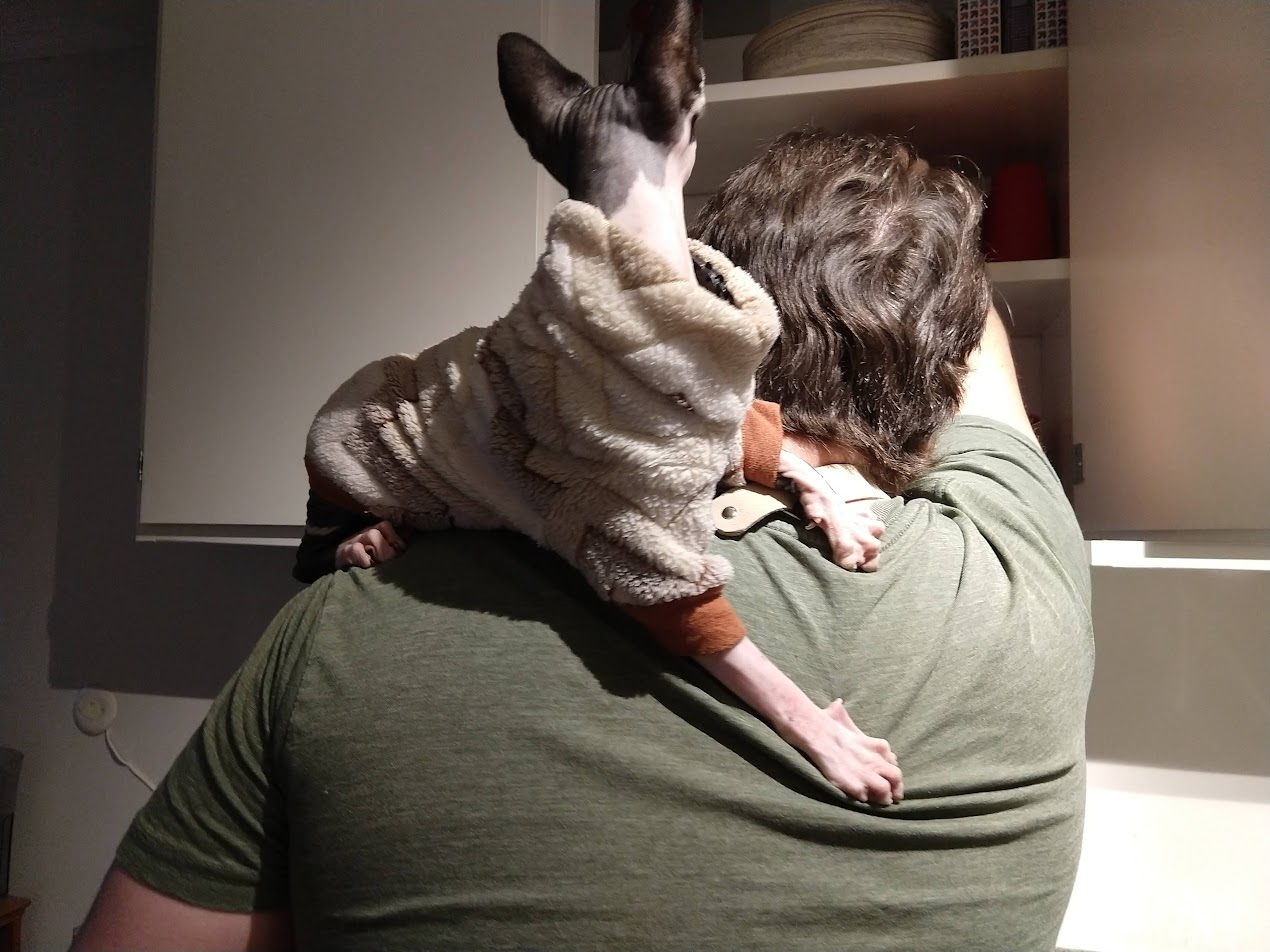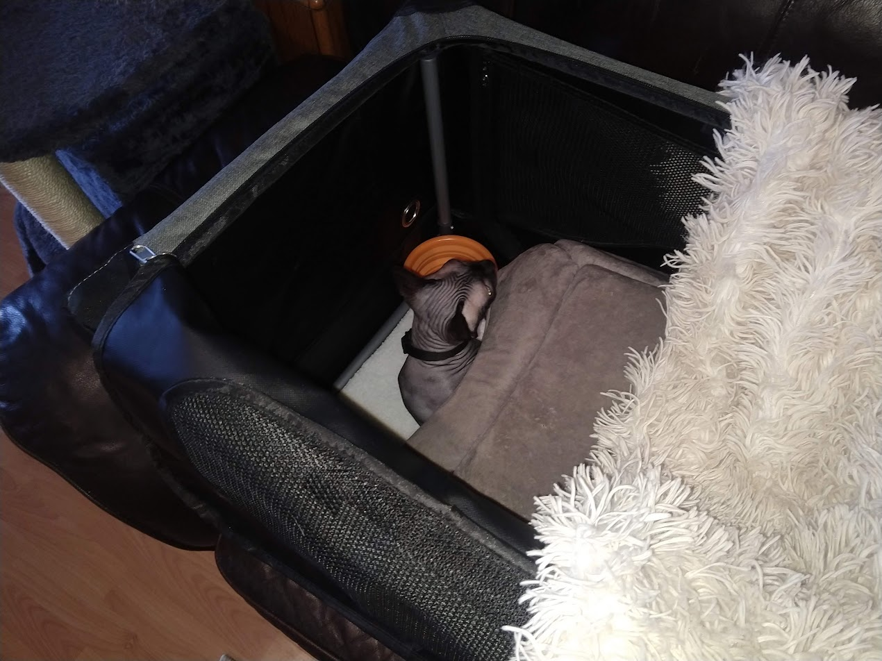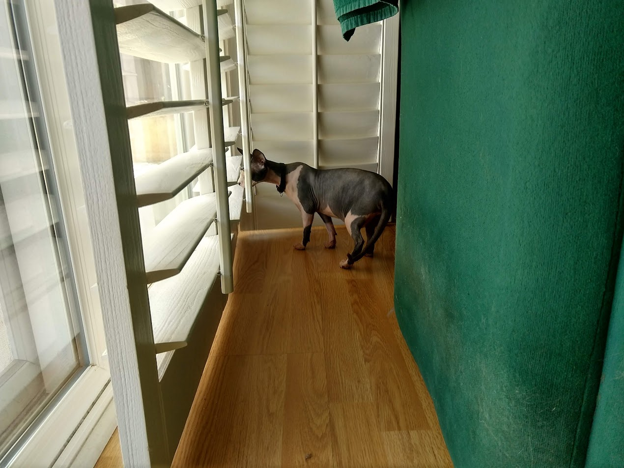 Normally we just carry the cats in their satchel, but this time we actually let her wander around on her own.