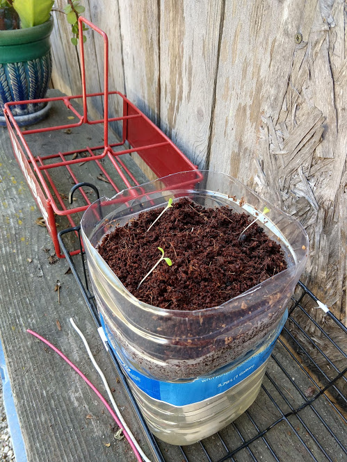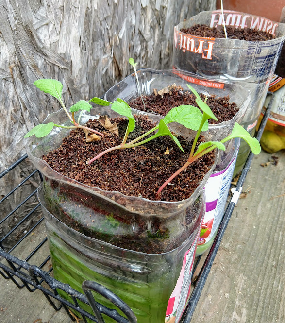 Grandma's lettuces got eaten by squirrels or rats, so she started locking the plants up at night in the shed. Here's all the little plants she had: