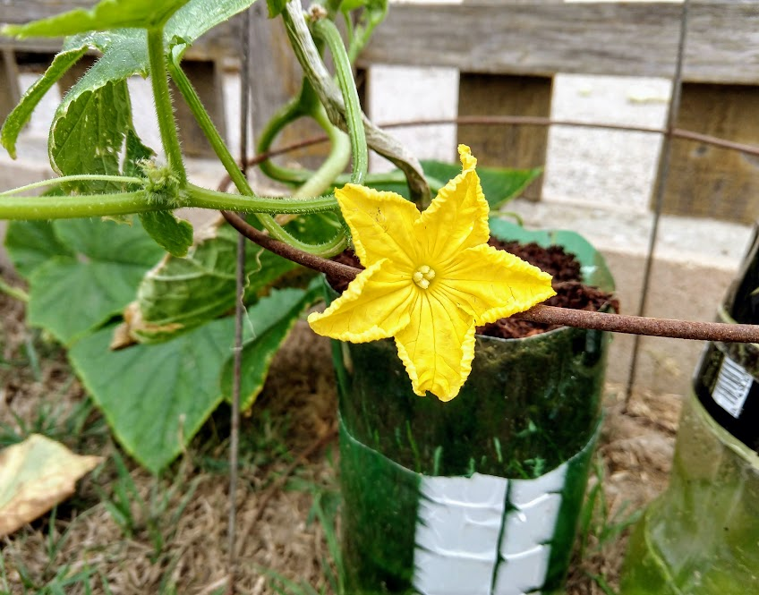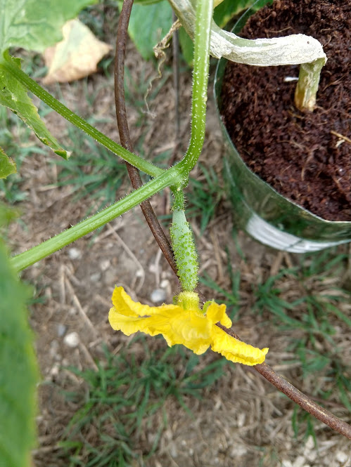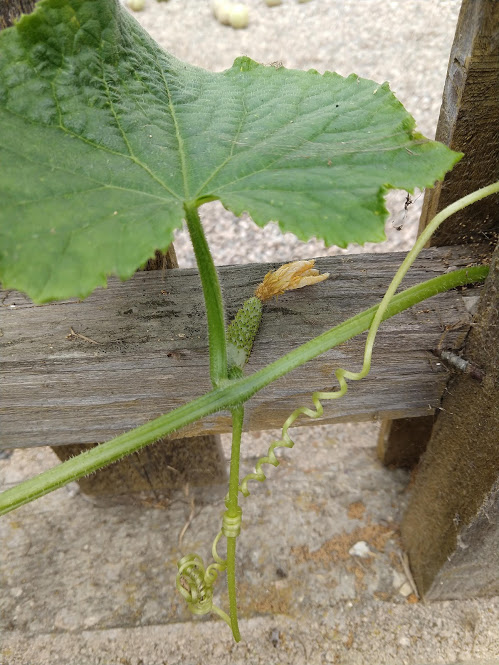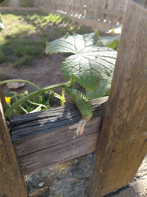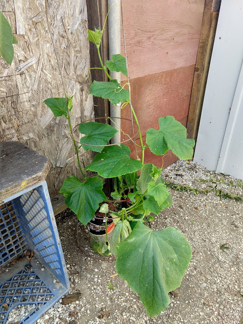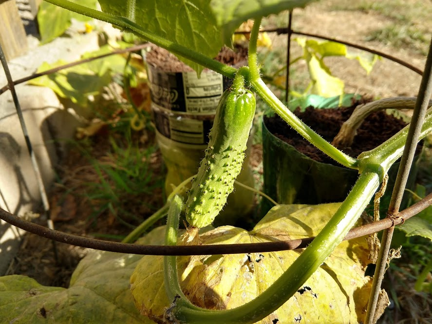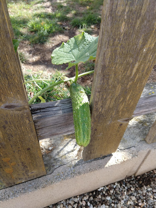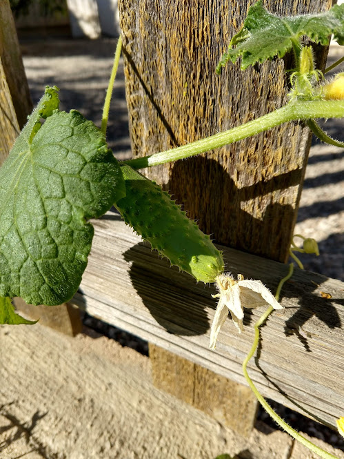 We decided to move the cucumbers into the sun where we could lay them out to creep along the ground.