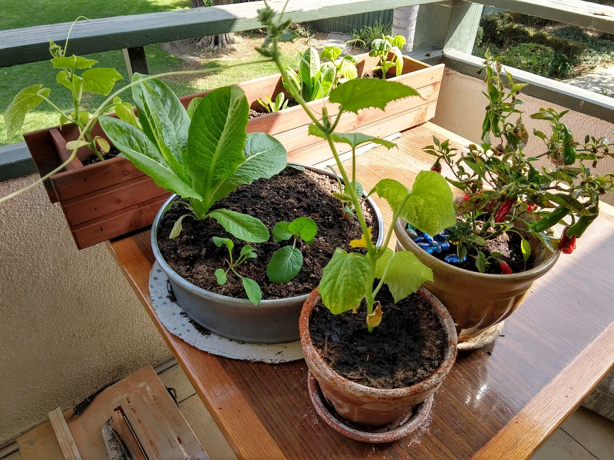 Later, these lettuces all got chewed down to the nub by hungry pests. Valuable lesson, don't keep leafy plants out in the open during the evening.