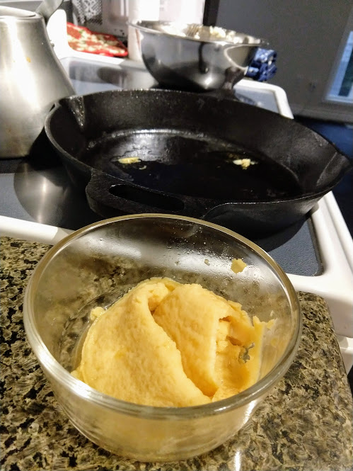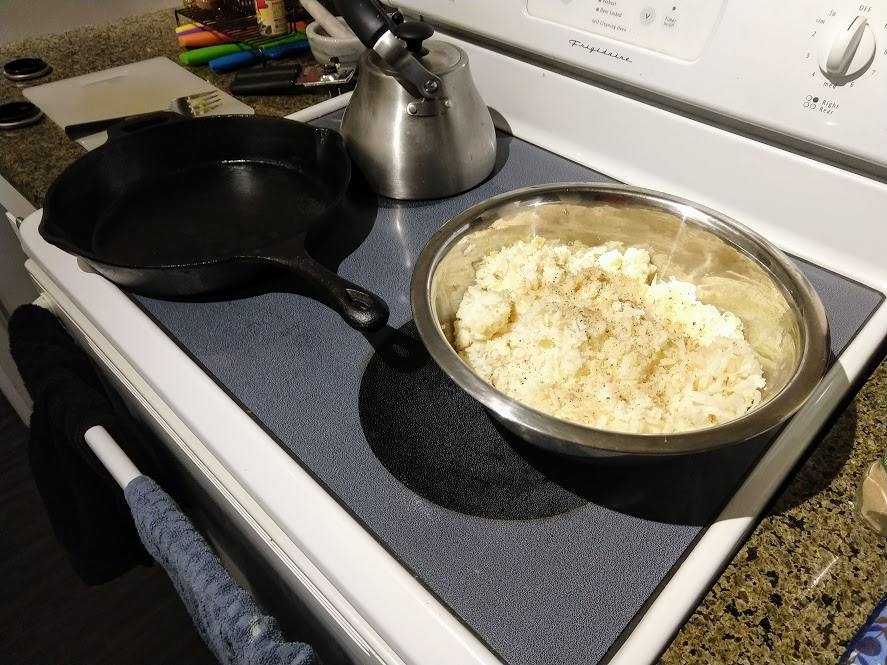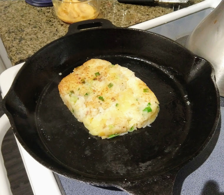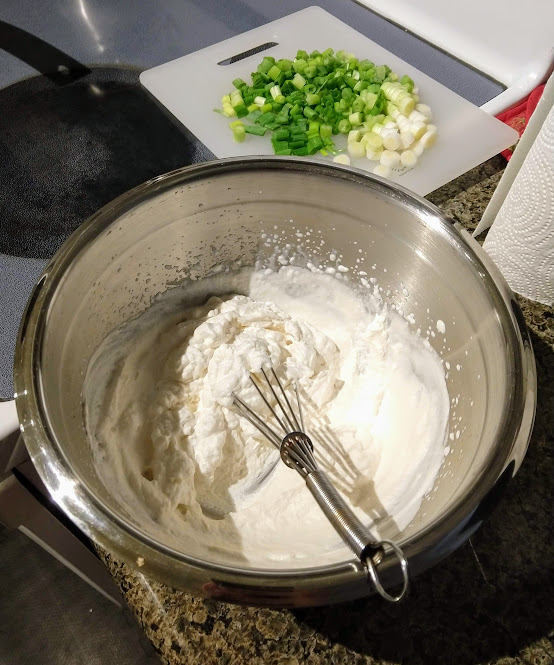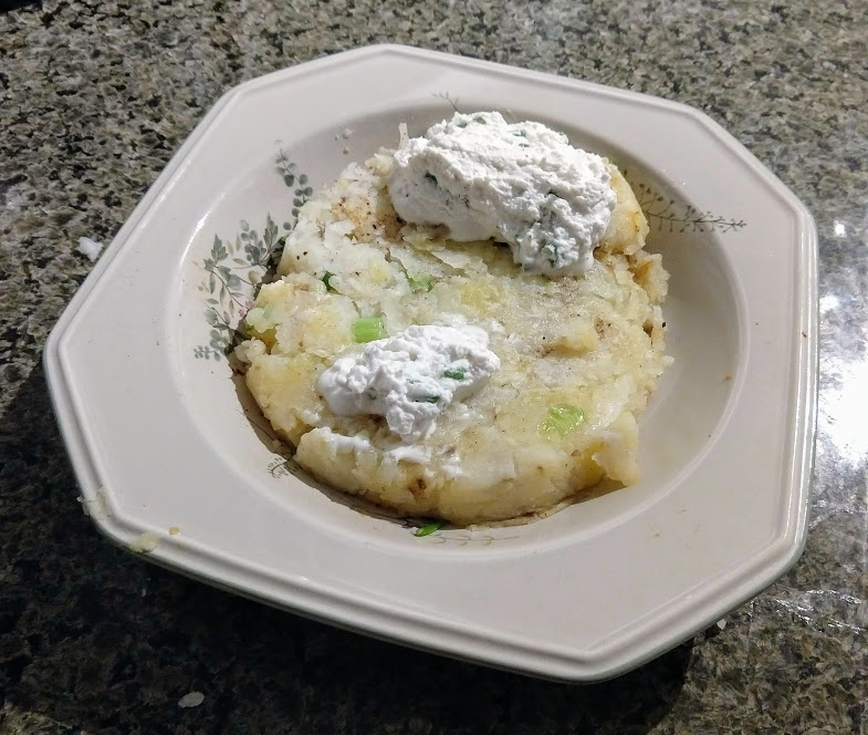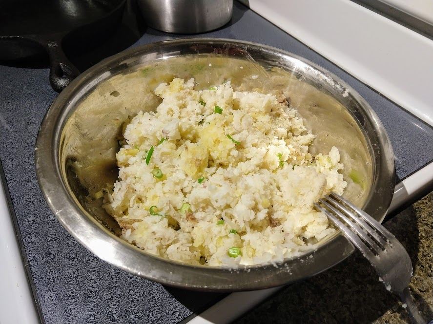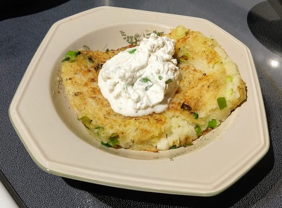 I think the briefest summary of this recipe is "How to ruin your diet with this one weird meal." Heavy cream, potatoes, lard, butter, and a splash of vinegar and scallions to give it colour.
